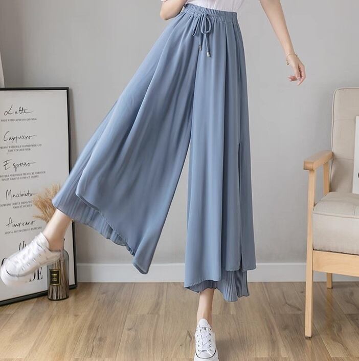 フェミニンで大人可愛い9分丈ワイドパンツ。