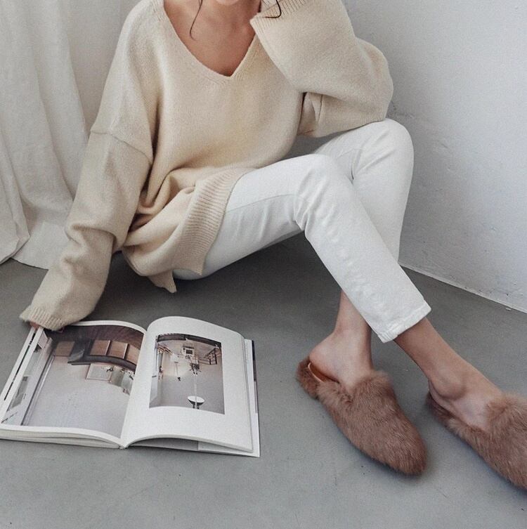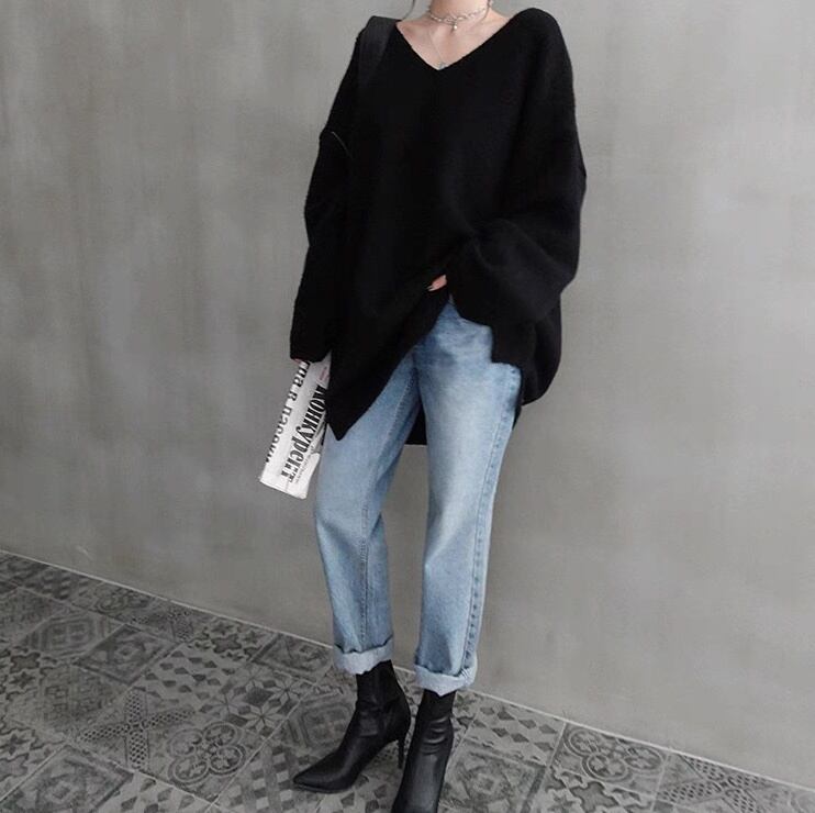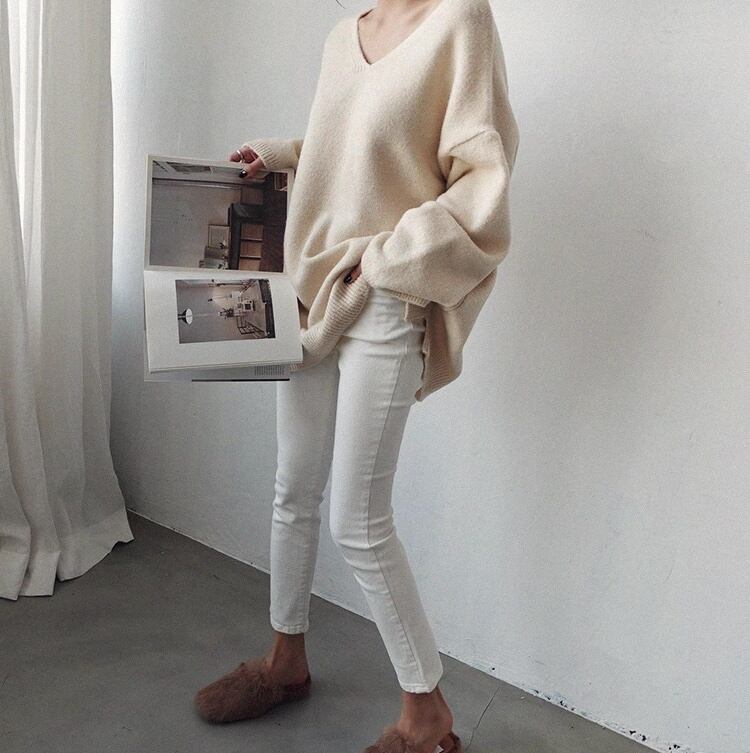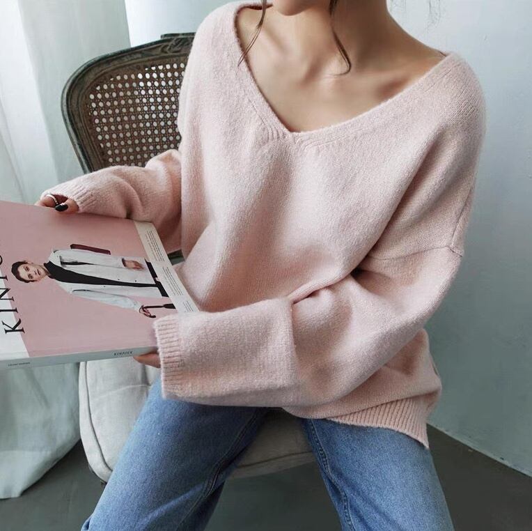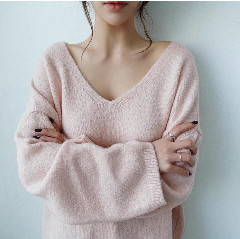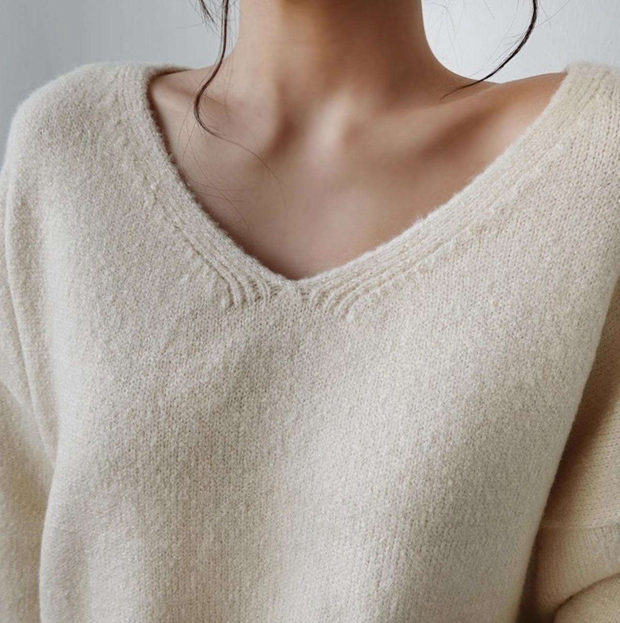 フェミニンで大人可愛いオーバーサイズVネックニット。