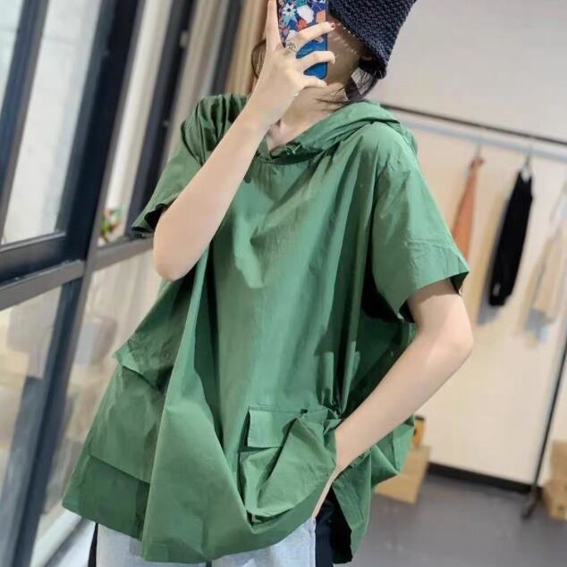 レディース トップス プルオーバー パーカー 半袖 フード ストリート ポケット アメカジ シンプル カジュアル おしゃれ レトロ ラフ メンズライク マニッシュ ボーイッシュ スポーティー ルーズ キュート カレッジ風 学生風 ベーシック アメリカン アクティブ ナチュラル 無地 夏 学生 学校 通学 部活 お出かけ アウトドア キャンプ 休日 フェス 重ね着 お揃い 双子 楽ちん 体型カバー 普段使い 着回し トレンド 流行 インスタ映え 定番 ゆったり ゆる フリーサイズ 黒 ブラック 緑 グリーン