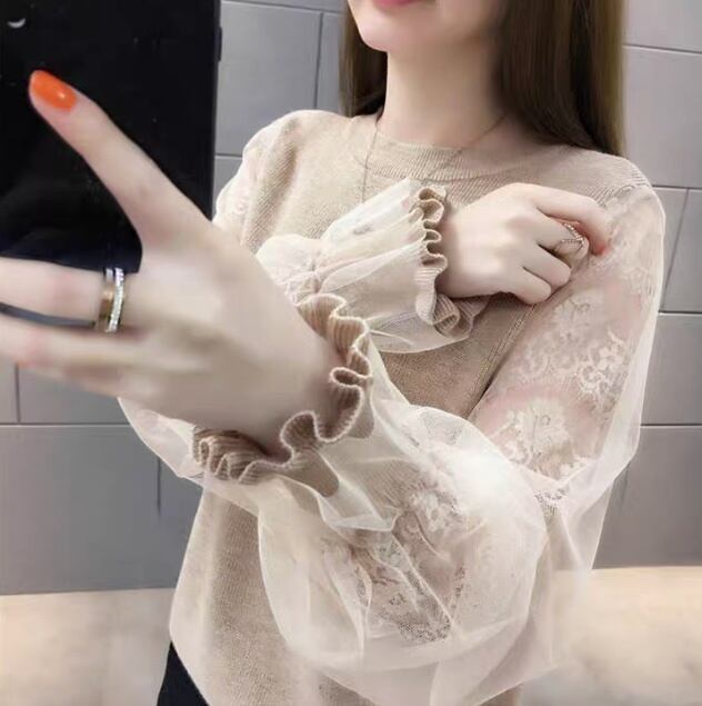 レディース トップス ニット 長袖 ボリューム袖 フリル袖 ラウンドネック フェミニン レース 刺繍 チュール 透け感 シースルー 切り替えデザイン ドッキング かわいい 大人可愛い きれいめ おしゃれ ガーリー エレガント モダン 存在感 抜け感 ラブリー キュート 都会的 ラグジュアリー クラシカル ロマンティック 花柄 フラワー 秋 冬 デート お出かけ 休日 お花見 合コン コンパ 婚活 モテ トレンド 流行 インスタ映え S M L 小さいサイズ 大きいサイズ クリーム 黒 ブラック グレー
