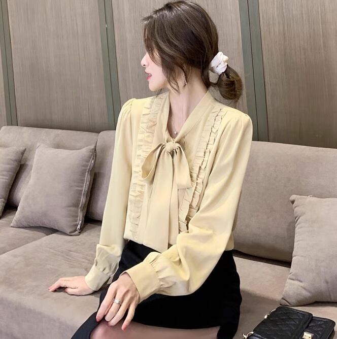 レディース トップス シャツ ブラウス 長袖 ボリューム袖 Vネック りぼんタイ フェミニン シフォン フリル リボン かわいい 大人可愛い きれいめ おしゃれ レトロ ガーリー エレガント モダン 存在感 かっちり ラブリー キュート ロリータ ロマンティック 無地 春 秋 デート お出かけ パーティー イベント レストラン 休日 カフェ 重ね着 着回し レイヤード モテ 清楚 トレンド 流行 インスタ映え S M L XL 2XL 小さいサイズ 大きいサイズ 白 ホワイト 黄色 イエロー 水色 ブルー