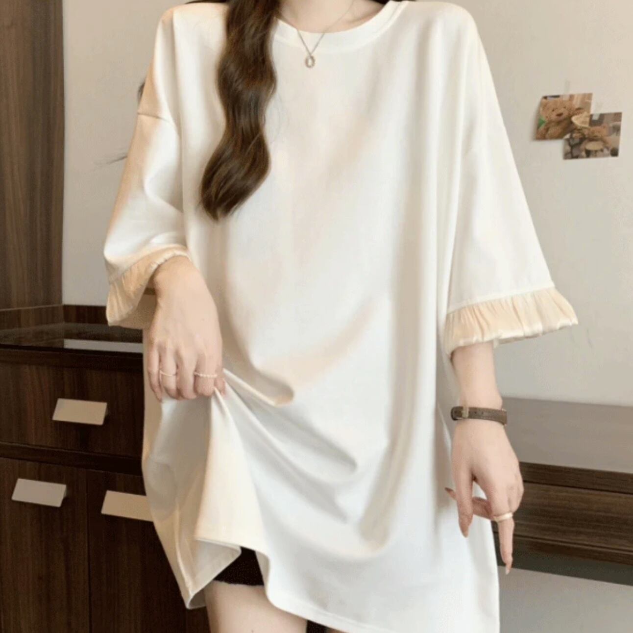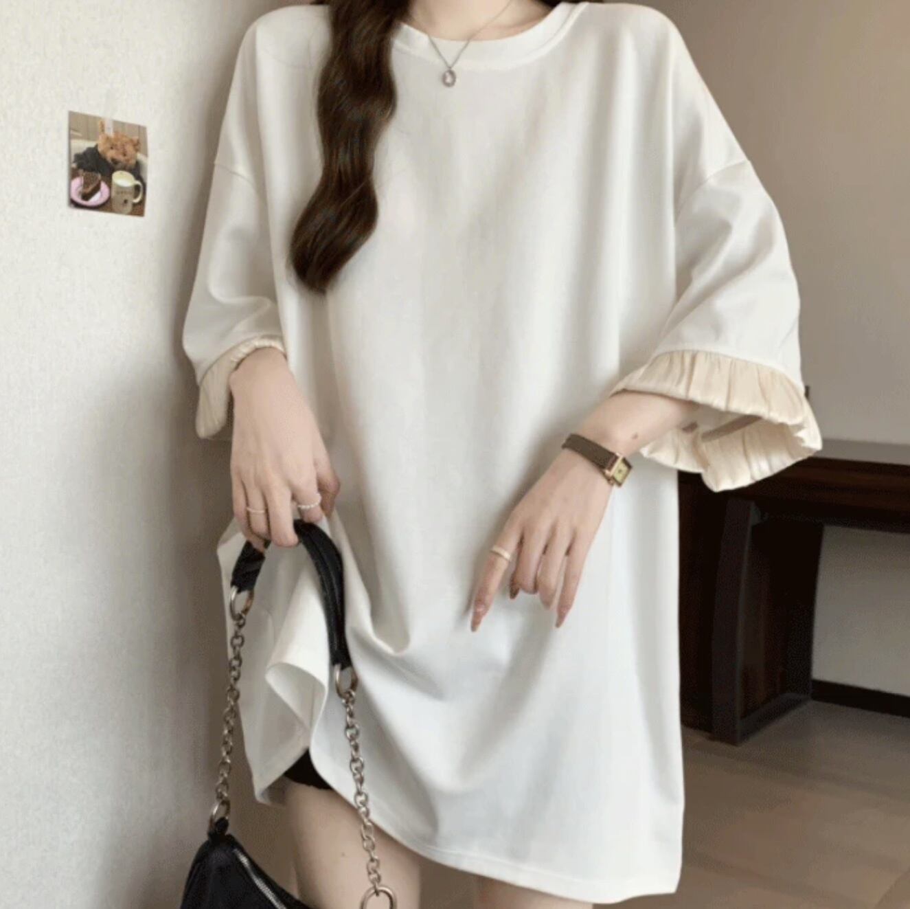 レディース ワンピース ショート 膝上 7分袖 フリル袖 ラウンドネック フェミニン フリル かわいい 大人可愛い きれいめ シンプル カジュアル おしゃれ こなれ感 ガーリー 抜け感 ラブリー キュート ベーシック アクティブ ロマンティック ナチュラル 無地 春 夏 秋 デート お出かけ リゾート 旅行 休日 バカンス ライブ フェス 楽ちん 普段使い 着回し モテ 清楚 トレンド 流行 インスタ映え M L XL 2XL 3XL 4XL 大きいサイズ ビッグ ゆったり ゆる クリーム 黒 ブラック