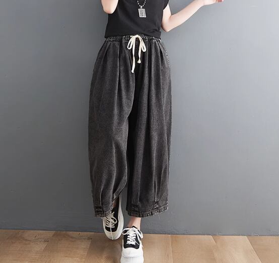 レディース パンツ ボトムス デニム Gパン 膝下 ロング 丈長 ワイド ポケット ウエストゴム ダメージ ウォッシュ ブルーデニム 薄手 シンプル カジュアル こなれ感 ラフ マニッシュ ボーイッシュ ルーズ ベーシック ナチュラル 無地 春 夏 通学 お出かけ アウトドア キャンプ 旅行 海 公園 休日 ショッピング コンサート ライブ お花見 カフェ フェス コーデ 楽ちん 体型カバー 普段使い 着回し M L XL 2XL ゆったり ゆる 黒 ブラック ブルー ベーシックカラー