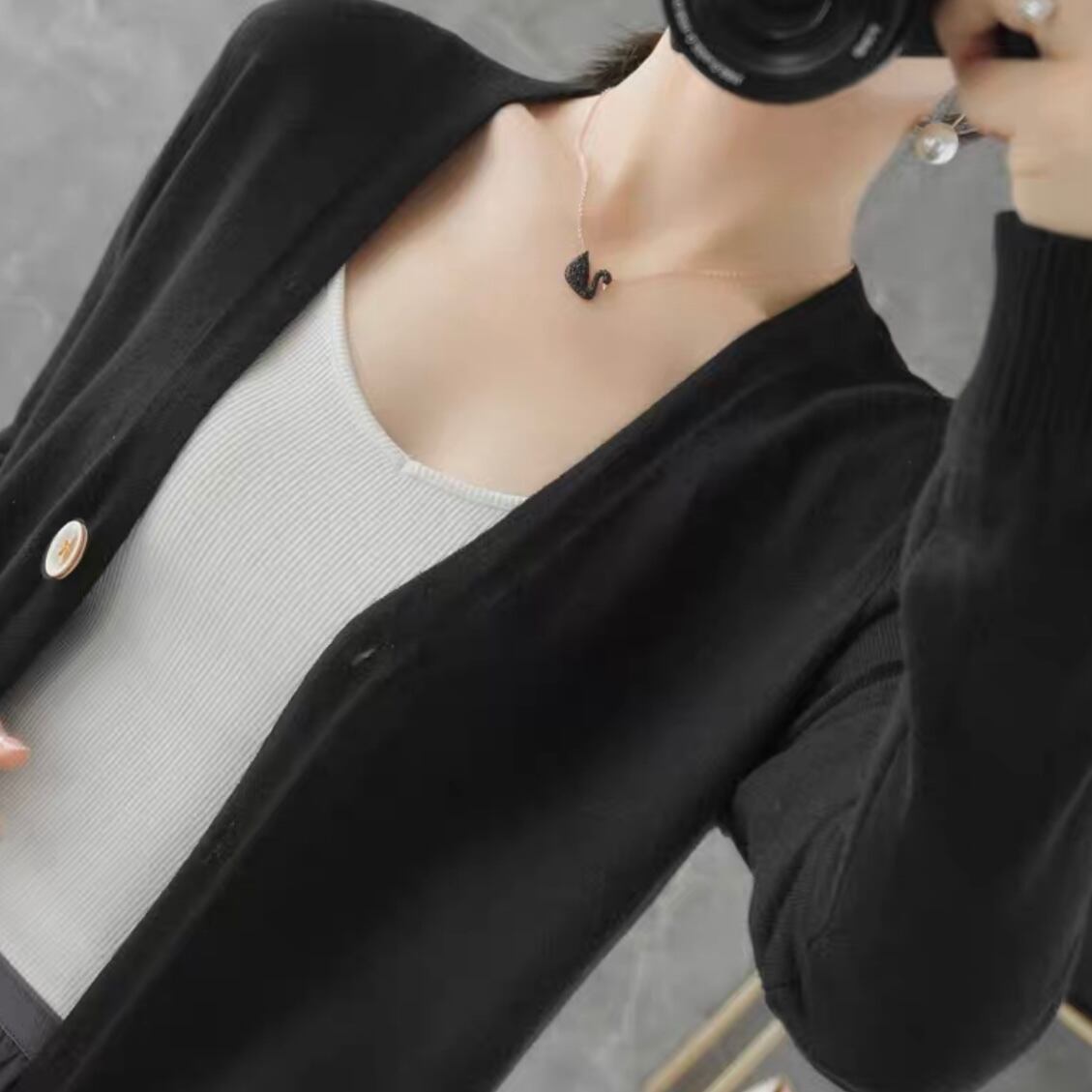 シンプルでありながらもおしゃれなデザインが魅力のニットカーディガン。