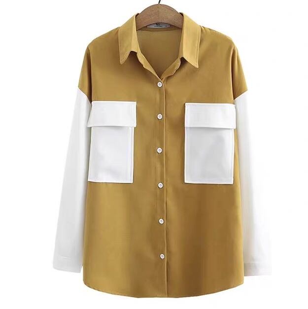 レディース トップス シャツ ブラウス 長袖 Vネック 襟付き 角襟 フェミニン ストリート ポケット 前開き 切り替えデザイン バイカラー 配色 ドッキング かわいい 大人可愛い カジュアル おしゃれ かっこいい レトロ こなれ感 メンズライク マニッシュ ボーイッシュ アメリカン プレッピー カントリー アクティブ ロマンティック ナチュラル ワイルド 無地 春 秋 着回し レイヤード トレンド 流行 インスタ映え XL 2XL 3XL 4XL 大きいサイズ ビッグ ゆったり ゆる ピンク キャメル
