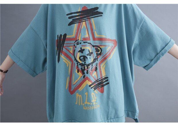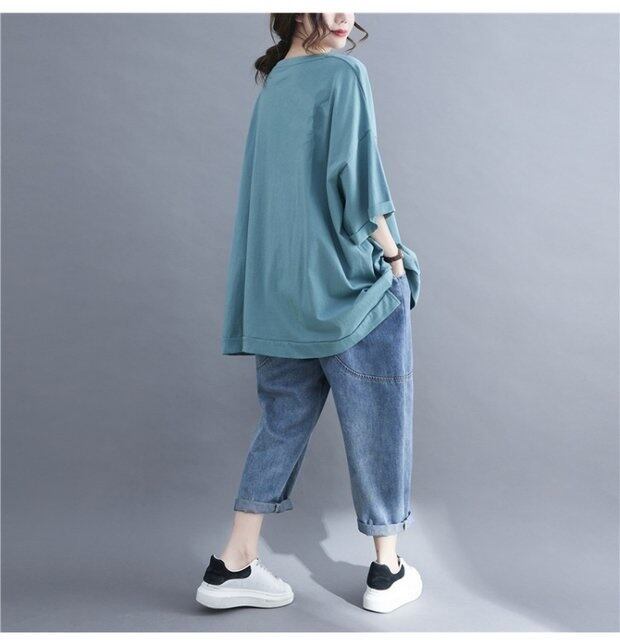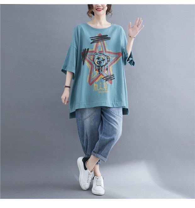 レディース トップス カットソー プルオーバー 丈長 半袖 ラウンドネック 襟なし ワイド シンプル カジュアル おしゃれ エキゾチック こなれ感 ラフ メンズライク ルーズ 個性的 クール 主役級 存在感 抜け感 都会的 ベーシック ナチュラル ワイルド プリント 春 夏 デート お出かけ お泊まり 公園 休日 ショッピング カフェ 韓国 オルチャン コーデ 楽ちん 体型カバー 普段使い 着回し モテ トレンド 流行 インスタ映え 定番 XL 2XL 大きいサイズ ビッグ ゆったり ゆる ブルー