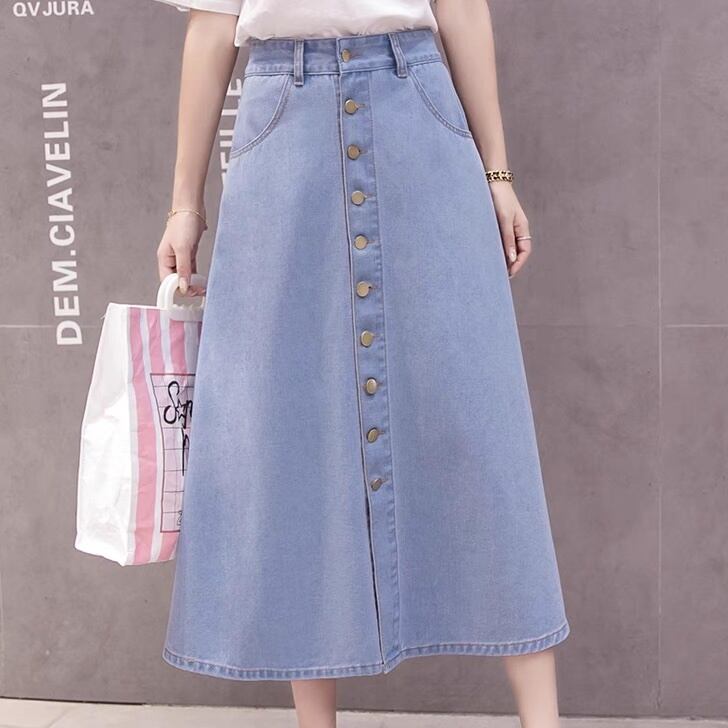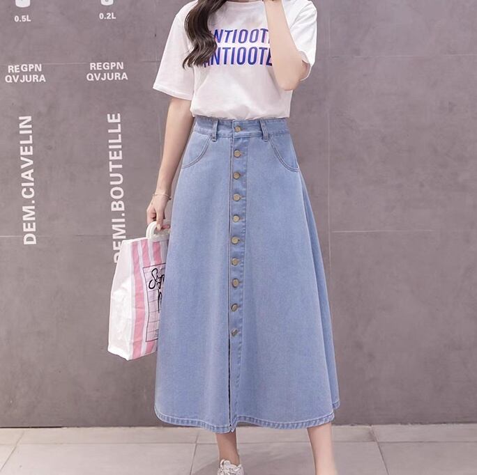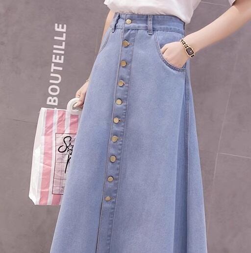 レディース スカート ボトムス カラースカート デニムスカート フレアスカート ロングスカート フレア Aライン フェミニン ストリート ハイウエスト ボタン アメカジ デニム ブルーデニム シンプル カジュアル おしゃれ レトロ ガーリー ヴィンテージ ラブリー キュート 学生風 ベーシック アメリカン プレッピー カントリー アクティブ ナチュラル 無地 春 夏 秋 冬 オールシーズン ロングシーズン シーズンレス デート 休日 普段使い 着回し 定番 S M L XL 2XL 水色 ブルー ネイビー