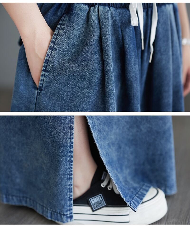 レディース パンツ ボトムス ワイドパンツ ワイド スリット ポケット ウエストゴム デニム ブルーデニム 大人可愛い シンプル カジュアル おしゃれ かっこいい こなれ感 ラフ ルーズ 個性的 クール 主役級 存在感 抜け感 都会的 ベーシック ナチュラル 無地 春 夏 デート お出かけ 女子会 休日 ショッピング カフェ 韓国 オルチャン コーデ 楽ちん 体型カバー 普段使い 着回し モテ トレンド 流行 インスタ映え 定番 L XL 2XL 大きいサイズ ゆったり ブルー ベーシックカラー
