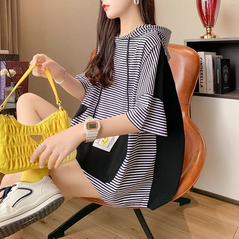 レディース トップス プルオーバー パーカー ロング 5分袖 ボリューム袖 フレアスリーブ ラウンドネック フード フレア Aライン 切り替え オーバーサイズ 裾ワイド かわいい 大人可愛い カジュアル おしゃれ かっこいい こなれ感 ラフ ボーイッシュ スポーティー ガーリー ルーズ 個性的 抜け感 アメリカン ボーダー プリント 夏 学生 通学 デート お出かけ キャンプ パーティー イベント リゾート 旅行 公園 女子会 休日 バカンス ショッピング コンサート ライブ 楽ちん 着回し