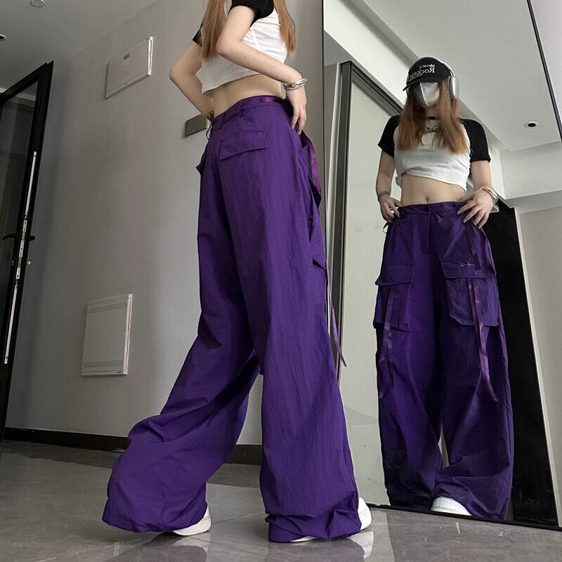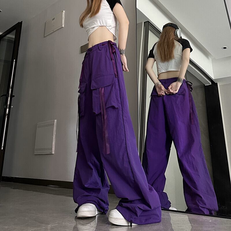 レディース パンツ ボトムス ワイドパンツ ワイドレッグパンツ ロング ストレート ストリート ポケット ハイウエスト かわいい 大人可愛い シンプル カジュアル おしゃれ かっこいい こなれ感 ラフ スポーティー ガーリー ルーズ ラブリー キュート 無地 夏 学生 学校 通学 デート お出かけ パーティー イベント ジム 女子会 ショッピング 発表会 ダンス 韓国 コーデ 楽ちん 体型カバー 脚長 普段使い 着回し モテ トレンド 流行 インスタ映え S M L ゆったり ゆる パープル