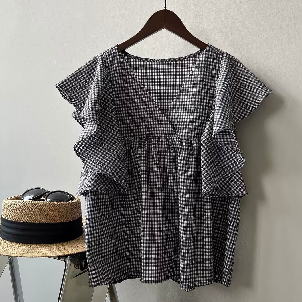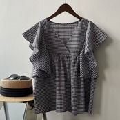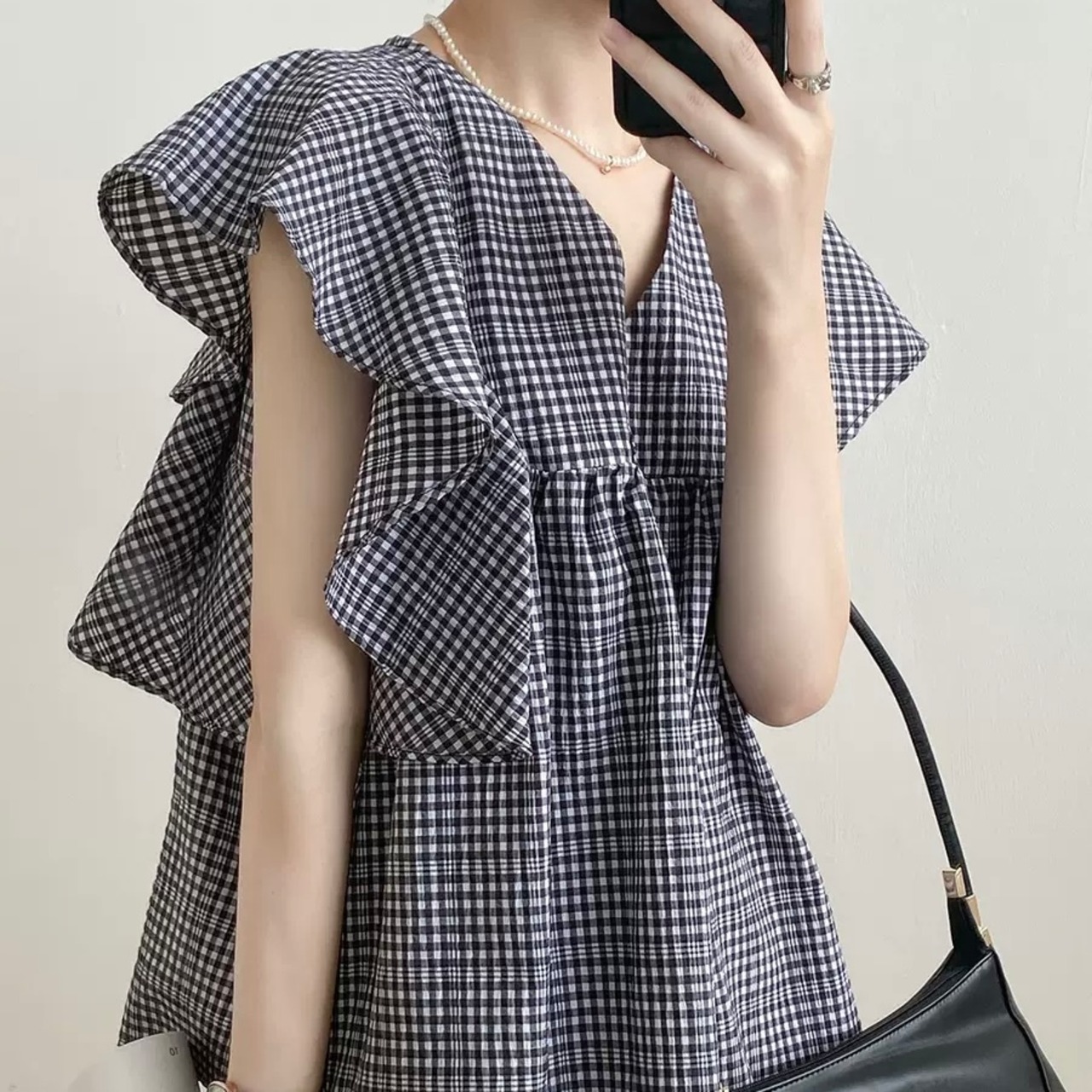 トップス サマーブラウス 韓国風 オルチャン 定番トップス シャツ ブラウス 袖なし ノースリーブ ボリューム袖 フリル Vネック 襟なし ストレート Iライン タイト 細身 スッキリ 大人可愛い きれいめ シンプル カジュアル 大人カジュアル 大人 上品 おしゃれ お洒落 かっこいい 大人女子 こなれ感 クール モード系 体型カバー セクシー モダン スタイリッシュ シック チェック柄 春 夏 秋 韓国系 オルチャン モテ 定番 M L 縦ライン スタイルアップ 美ライン 美シルエット 女っぽ 落ち着き