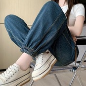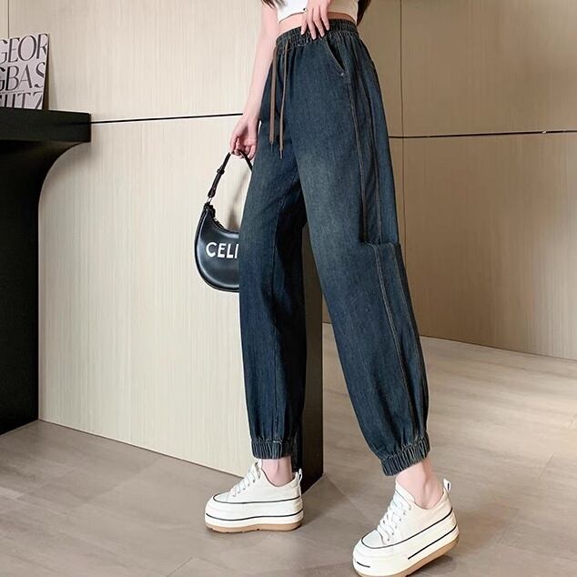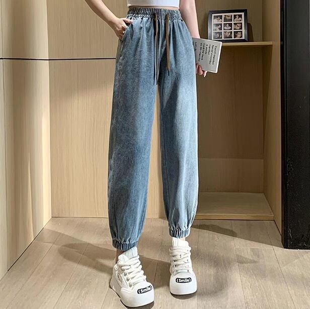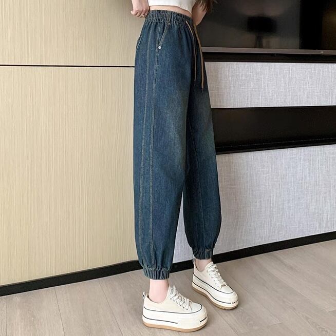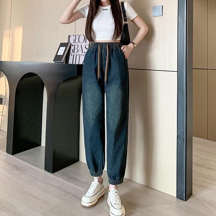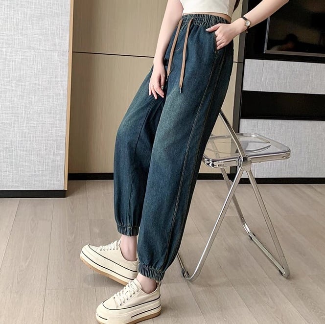 レディース パンツ ボトムス Gパン ジョガーパンツ デニムパンツ アンクル丈 ストリート ポケット ハイウエスト ウエストゴム ドロスト ヴィンテージ アメカジ シンプル カジュアル おしゃれ レトロ ラフ メンズライク マニッシュ ボーイッシュ ルーズ ベーシック アメリカン プレッピー カントリー アクティブ ナチュラル 無地 春 夏 学生 お出かけ 女子会 休日 カフェ フェス 楽ちん 体型カバー 普段使い トレンド 流行 インスタ映え 定番 S M L XL 2XL 水色 ブルー ライトブルー