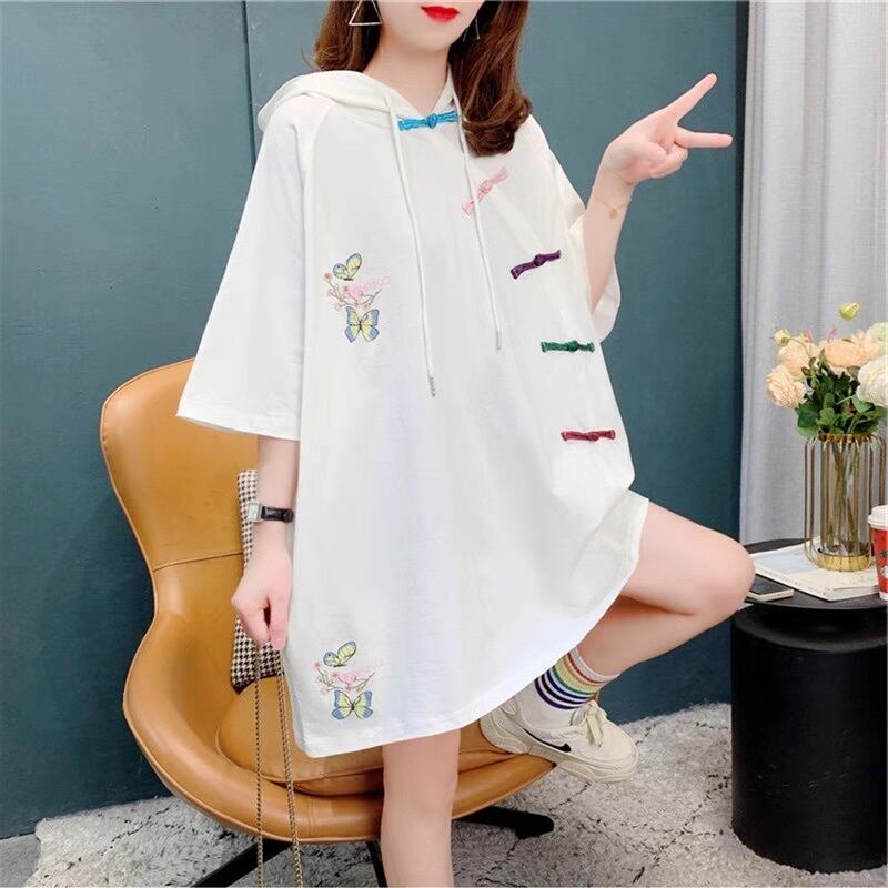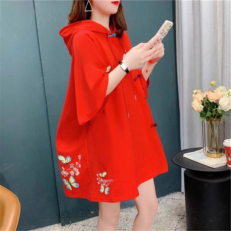 レディース トップス プルオーバー パーカー 5分袖 チャイナ フード オーバーサイズ かわいい 大人可愛い カジュアル おしゃれ レトロ アジアン エスニック エキゾチック こなれ感 ガーリー 個性的 抜け感 ヴィンテージ ラブリー キュート アクティブ 蝶 春 夏 デート お出かけ アウトドア キャンプ イベント 旅行 公園 女子会 休日 ライブ フェス お揃い 双子 体型カバー 普段使い 着回し トレンド 流行 インスタ映え M L XL 2XL ゆったり ゆる 白 ホワイト 黒 ブラック レッド