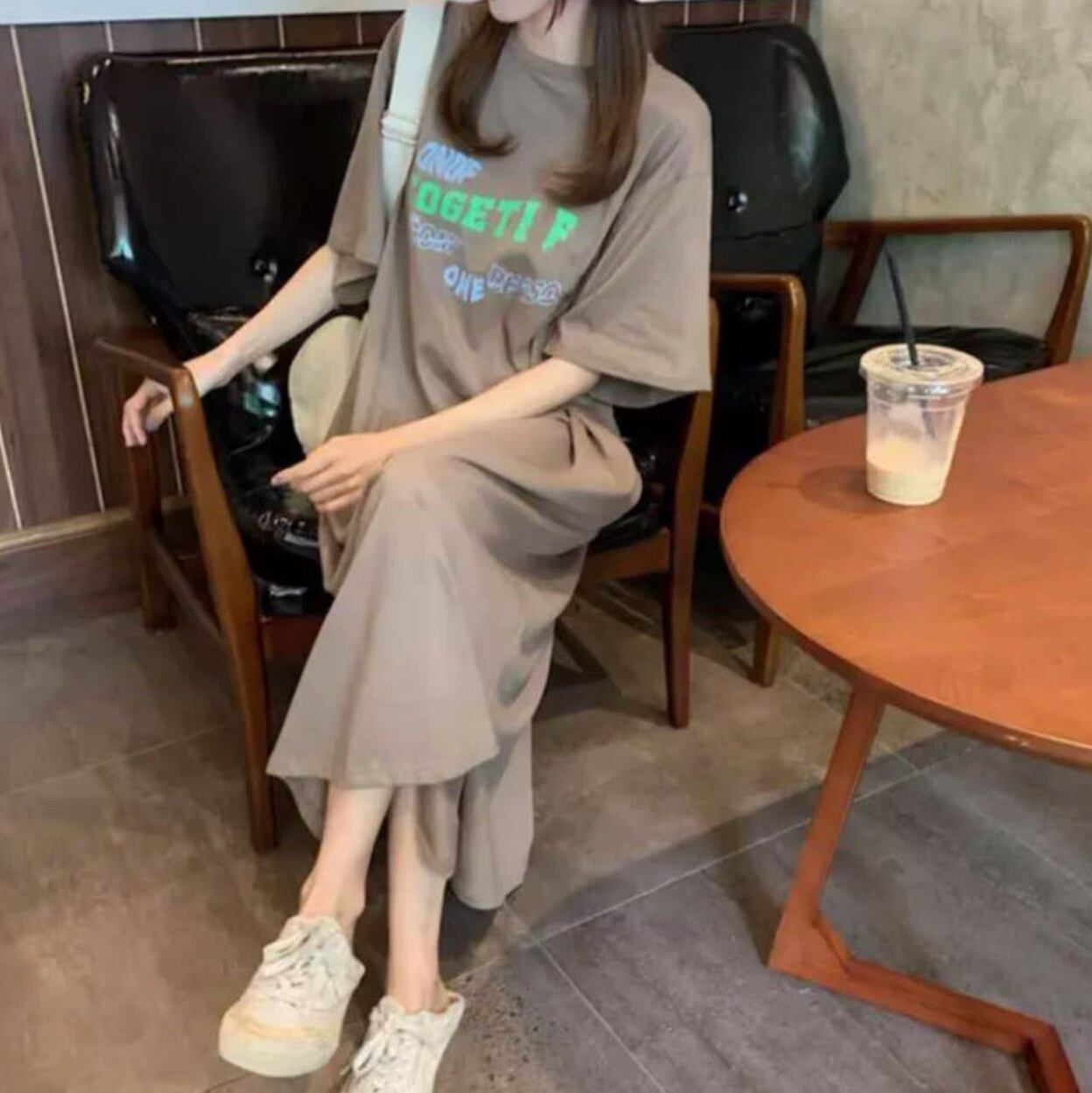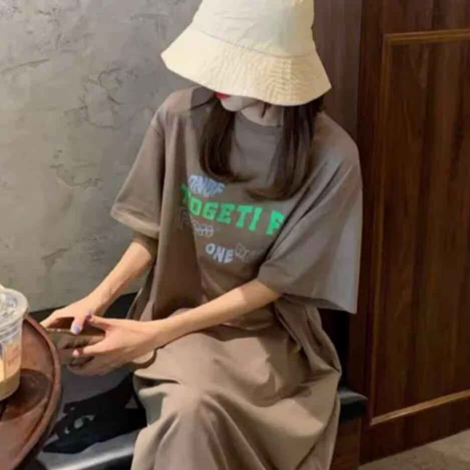 レディース ワンピース フレア ロング マキシ 半袖 ラウンドネック ストリート かわいい 大人可愛い シンプル カジュアル おしゃれ かっこいい ラフ ボーイッシュ スポーティー ガーリー ルーズ 抜け感 ベーシック アメリカン プレッピー カントリー アクティブ ナチュラル ロゴ 夏 学生 お出かけ リゾート 女子会 休日 バカンス ショッピング コンサート ライブ フェス お揃い 双子 韓国 オルチャン コーデ 楽ちん 体型カバー 普段使い 着回し 定番 S M L 黒 ブラック 茶色 ブラウン