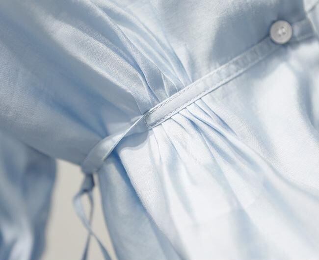 キュートでエレガントなシフォンシャツ!Vネックとポロカラーが女性らしさを引き立て、ウエストリボンが華やかさをプラス。透け感があるシフォン素材が、大人可愛いスタイルを演出してくれます。