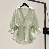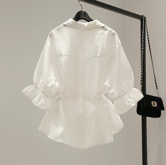 レディース トップス シャツ ブラウス シアーシャツ 長袖 Vネック ポロカラー スリム ストレート シフォン ウエストリボン 透け感 かわいい 大人可愛い きれいめ シンプル カジュアル おしゃれ ルーズ エレガント ラブリー キュート 無地 春 夏 OL 通勤 学生 デート お出かけ 女子会 ショッピング 韓国 コーデ 体型カバー 普段使い 着回し モテ トレンド 流行 インスタ映え M L XL 2XL 3XL 4XL 大きいサイズ ゆったり ホワイト ブラック イエロー ピンク ブルー グリーン