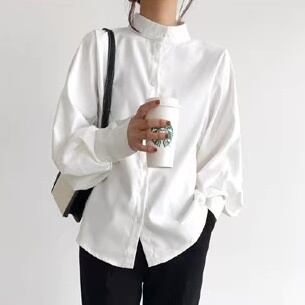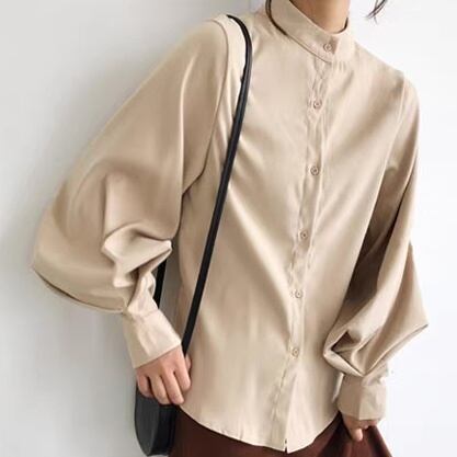 レディース トップス シャツ ブラウス 長袖 ボリューム袖 バルーン袖 スタンドカラー フェミニン 前開き かわいい 大人可愛い きれいめ シンプル 上品 おしゃれ ガーリー クール モード系 エレガント モダン 存在感 キュート ゴシック ロリータ 都会的 クラシカル ベーシック ロマンティック 無地 春 秋 お出かけ パーティー イベント 休日 カフェ 重ね着 着回し レイヤード トレンド 流行 インスタ映え S M L XL 小さいサイズ 大きいサイズ 白 ホワイト 黒 ブラック グレー ベージュ