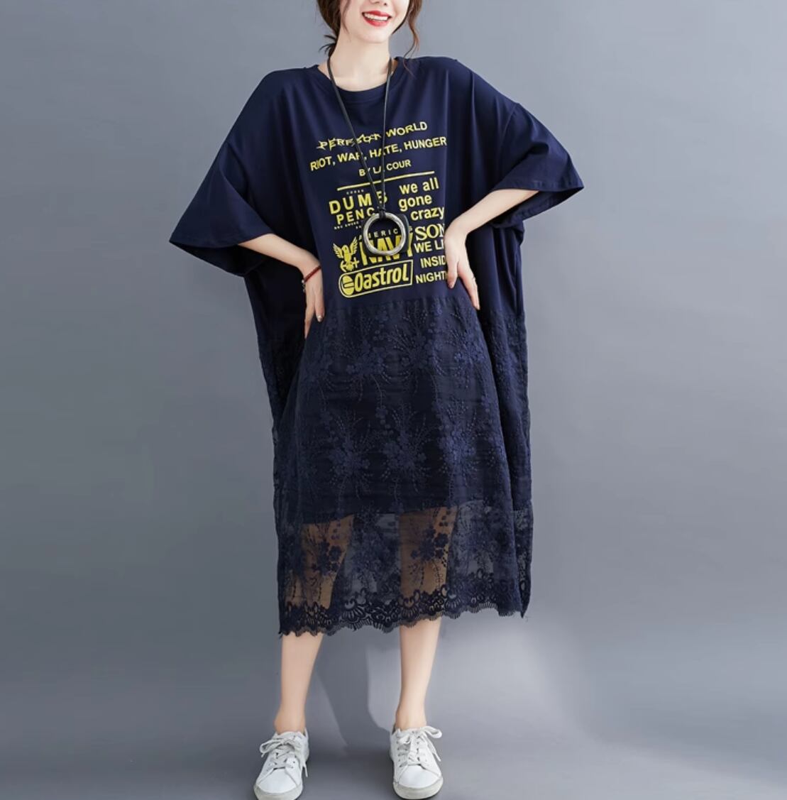 レディース ワンピース ルームウェア フレア Tシャツ 膝下 ミモレ ロング 丈長 半袖 5分袖 ラウンドネック クルーネック セミフレア Iライン フェミニン レース ドッキング 薄手 かわいい 大人可愛い シンプル カジュアル おしゃれ こなれ感 ラフ とろみ感 抜け感 ナチュラル 花柄 夏 ママ マタニティ 学生 通学 お出かけ アウトドア キャンプ イベント 旅行 プール 双子 韓国 コーデ 脚長 ゆったり ゆる フリーサイズ