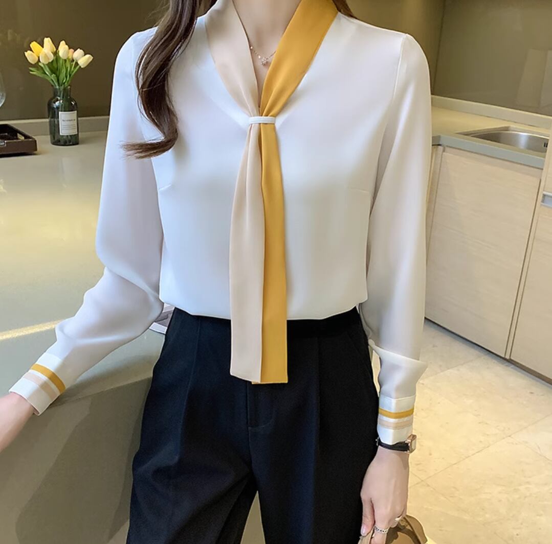 レディース トップス ブラウス 長袖 Vネック ボウタイ コンサバ 切り替えデザイン 薄手 かわいい 大人可愛い きれいめ シンプル 上品 おしゃれ こなれ感 ガーリー エレガント モダン 主役級 存在感 都会的 無地 秋 冬 入学式 入園式 卒業式 卒園式 会議 MTG ミーティング オフィス ビジネス OL 通勤 通学 デート お出かけ 旅行 ライブ 双子 韓国 オルチャン コーデ 楽ちん モテ 清楚 流行 インスタ映え 定番