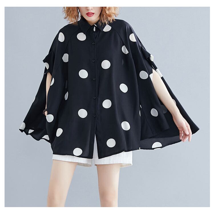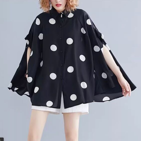 おしゃれで大人可愛い雰囲気漂うデートブラウスが登場しました! ドット柄とカッティング切り替えがポイントの、ミディアム丈で着回し力抜群なアイテムです。ドルマンスリーブとAラインのシルエットが女性らしさを引き立て、襟付きで上品さも演出。華やかなデザインながらも、シンプルで着心地の良い素材を使用しています。 デートや女子会、普段使いなど、様々なシーンで活躍する一枚です。存在感ある主役級アイテムに仕上がっているので、ぜひお手元にお迎えして個性を表現してみてください!