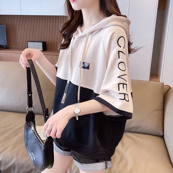カジュアルで可愛らしいデザインが魅力の半袖カットソーが新登場!袖にボリューム感があり、トレンドの切り替えデザインがおしゃれな一枚です。さらに、フード付きなので、おしゃれにアクセントをプラスしつつ、気になるUVカットにもしっかり対応してくれます。そのまま着るだけでこなれ感漂うスタイルが完成します。