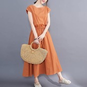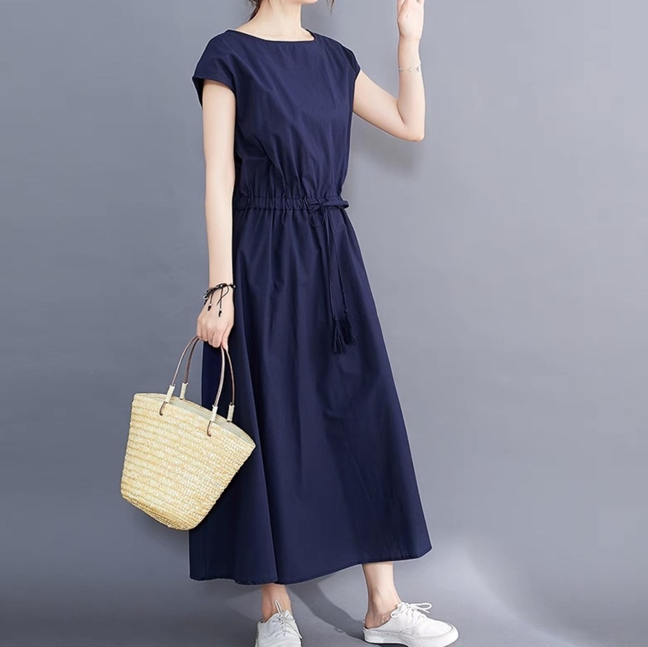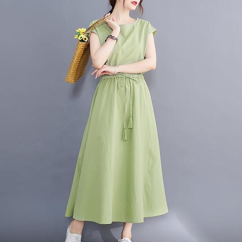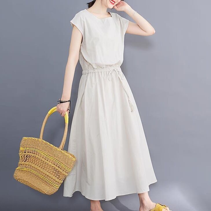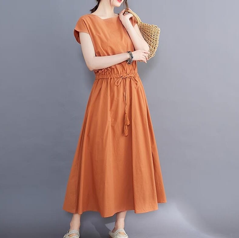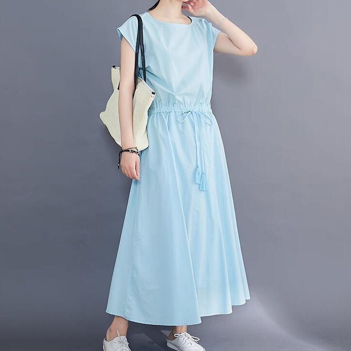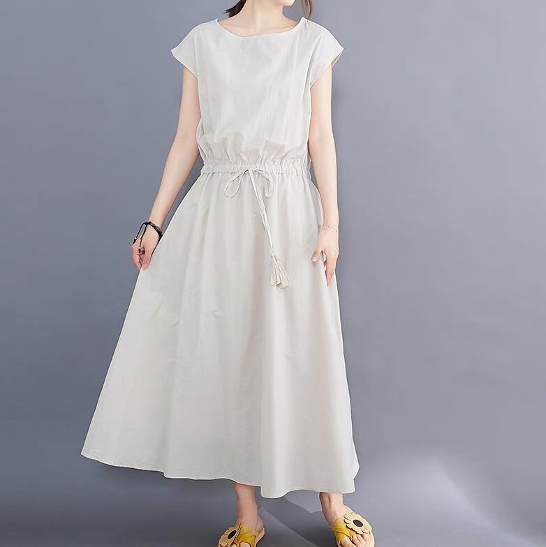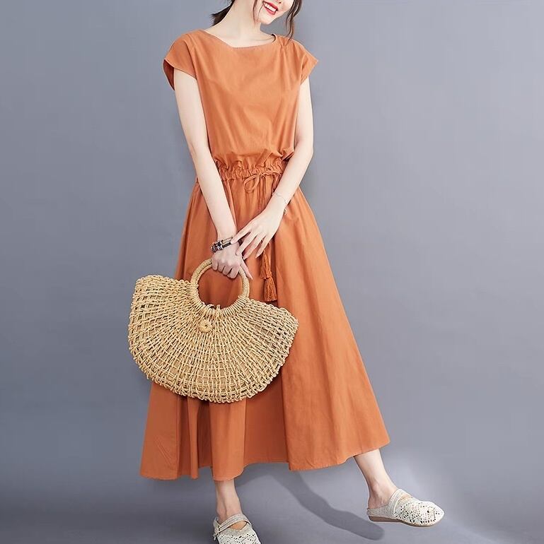 レディース ワンピース フレア ロング 半袖 ラウンドネック フレア Aライン フェミニン ウエストマーク ハイウエスト ドロスト リネン 綿 コットン 麻 フリンジ かわいい 大人可愛い きれいめ シンプル カジュアル おしゃれ レトロ アジアン エスニック 無地 夏 お出かけ イベント リゾート 旅行 ビーチ 女子会 休日 バカンス 定番 M L XL 2XL 大きいサイズ ゆったり ゆる 白 ホワイト 黒 ブラック カーキ オレンジ 水色 ブルー ネイビー 緑 グリーン ベーシックカラー 大人カラー