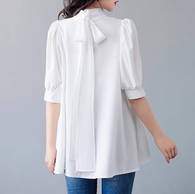 レディース トップス シャツ ブラウス 5分袖 スタンドカラー りぼんタイ フェミニン リボン バックリボン バックコンシャス かわいい 大人可愛い きれいめ 上品 おしゃれ レトロ ガーリー エレガント フォーマル ラブリー キュート ロマンティック ナチュラル 無地 夏 入学式 入園式 卒業式 卒園式 謝恩会 MTG ミーティング プレゼン オフィス ビジネス OL 通勤 イベント レストラン 休日 重ね着 清楚 インスタ映え M L 白 ホワイト 黒 ブラック ベージュ 水色 ブルー 緑 グリーン