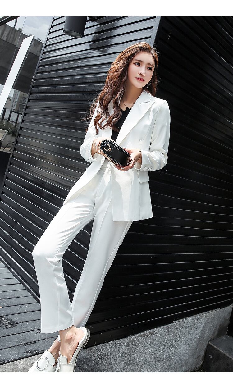 モード系でエレガントなレディーススーツが登場!上下セットで揃えたスタイリッシュな一着です。シンプルで上品なデザインながら、存在感抜群の大人可愛いアイテムです。クロップド丈のストレートパンツは脚長効果も抜群。襟付きのジャケットは前開きで着脱も簡単。主役クラスの洗練されたスーツで、女性らしさとクールさを兼ね備えた大人女子にぴったりです。デートや女子会、休日のお出かけまで、着回し自在の1着。おしゃれなプレゼントにも最適です。是非、お手元に取り入れて、お洒落な日々を楽しんでください。