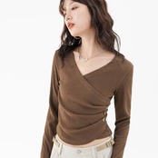 フェミニンなカシュクールデザインで大人可愛いスタイルを叶える長袖カットソー。