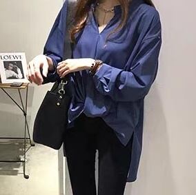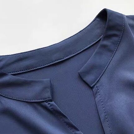 上品でフェミニンなVネックシャツブラウスで、都会的な洗練スタイルを。