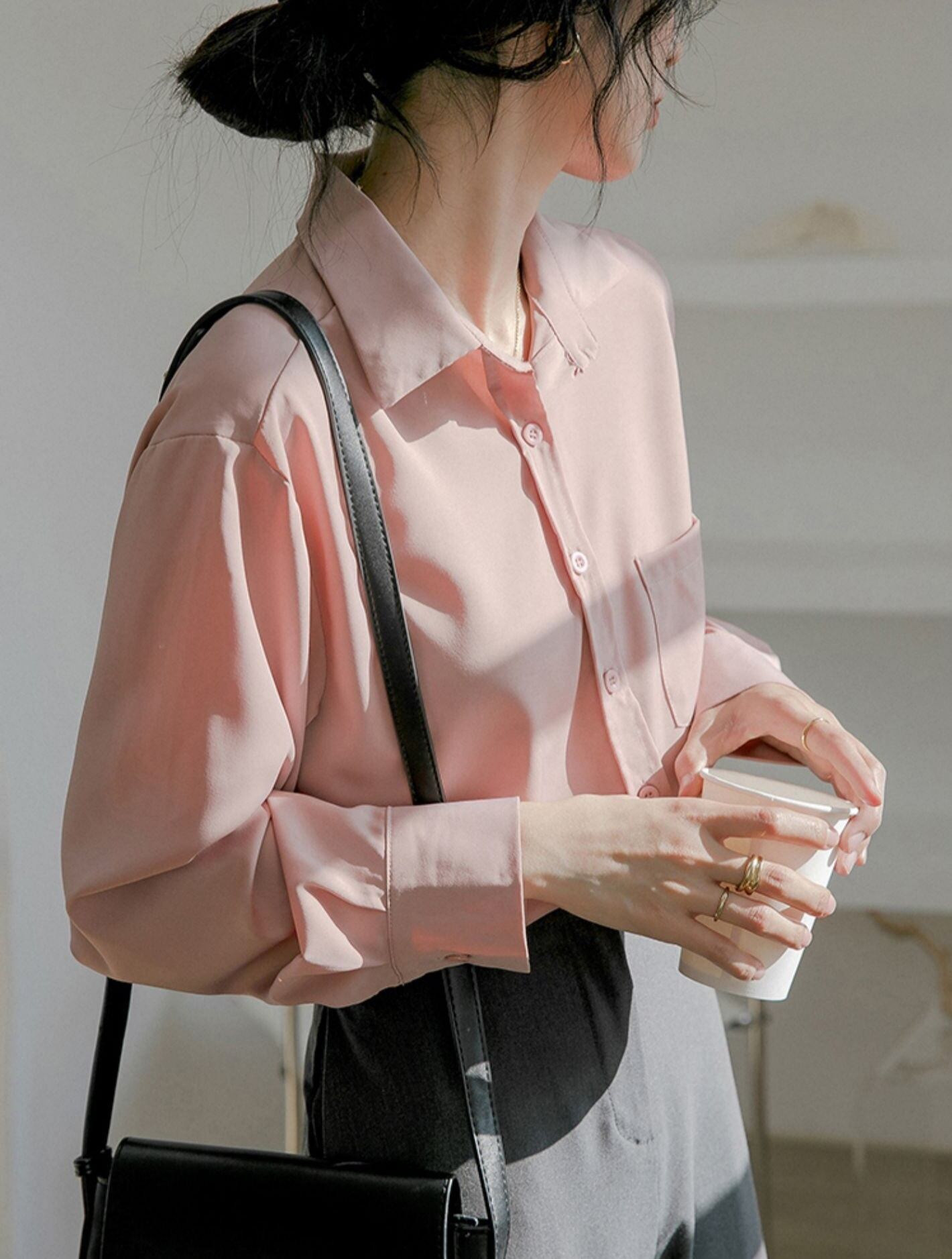 シンプルな韓国スタイルシャツは薄手の素材を使用しているため、春夏の季節にぴったり。オフィスやデート、カフェなど様々なシーンで活躍してくれる万能アイテムです。着心地も抜群で、1枚で主役級の存在感を放つこと間違いなし!