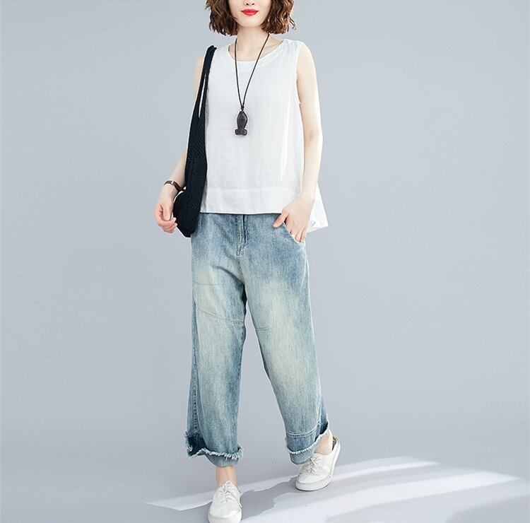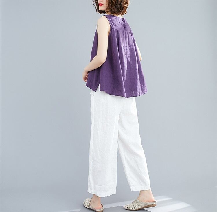 カジュアルなスタイルにぴったりのノースリーブトップス!ラウンドネックで着心地も良く、細身のAラインデザインでスリムなシルエットを演出。薄手のリネンコットン素材が、夏の暑い日でも涼しく快適な着心地。シンプルでありながら大人可愛いデザインなので、デートやお出かけ、リゾートやビーチなど様々なシーンで活躍してくれること間違いなし!