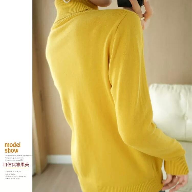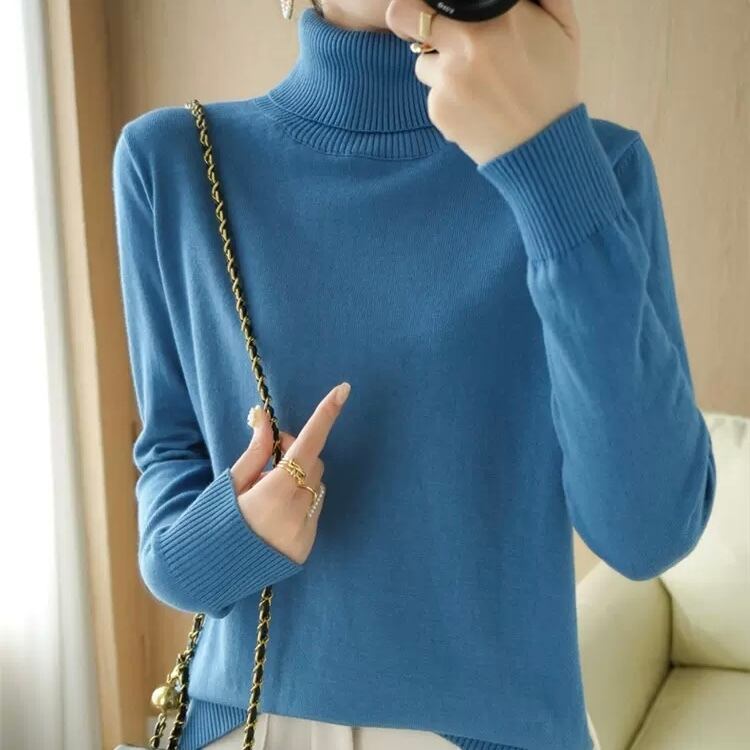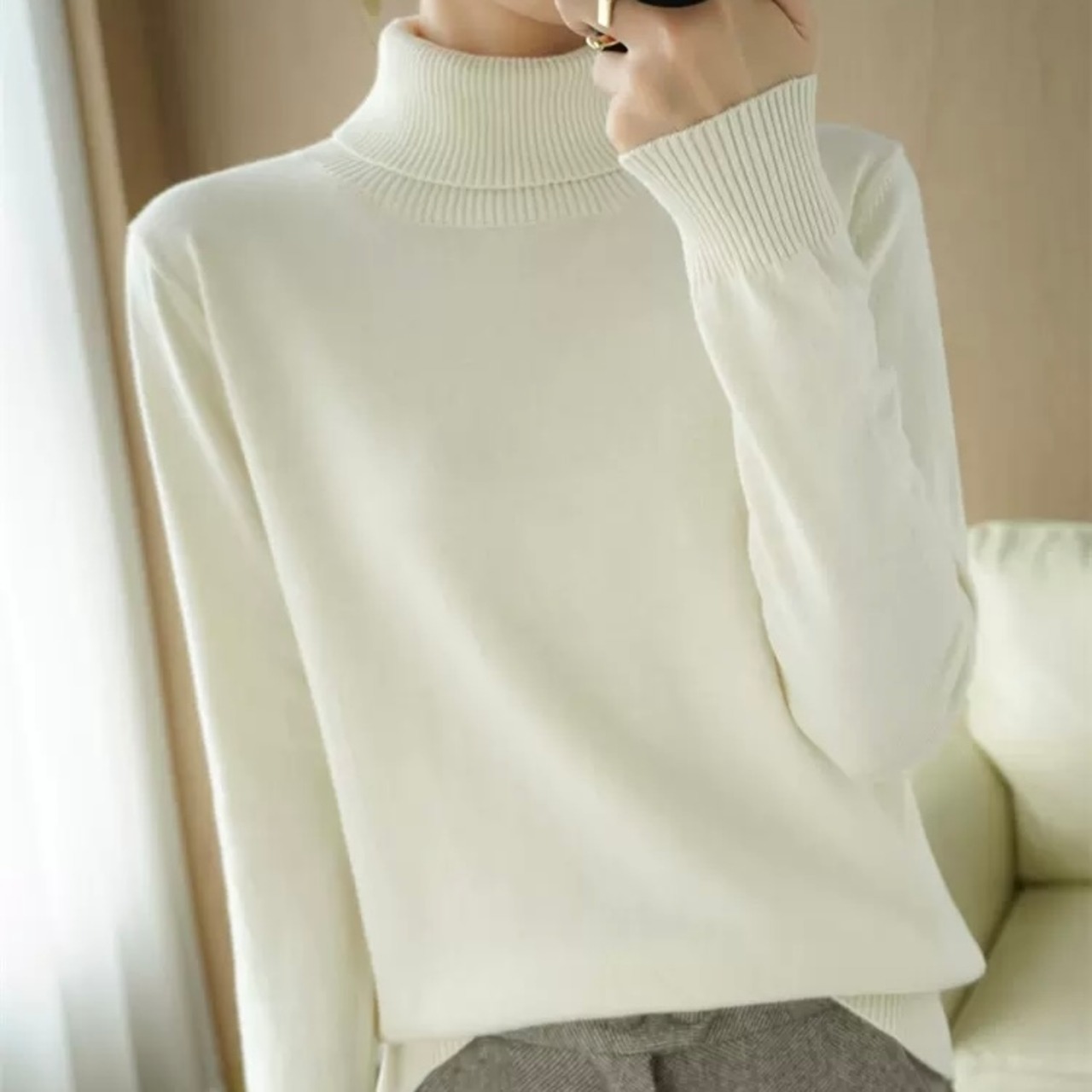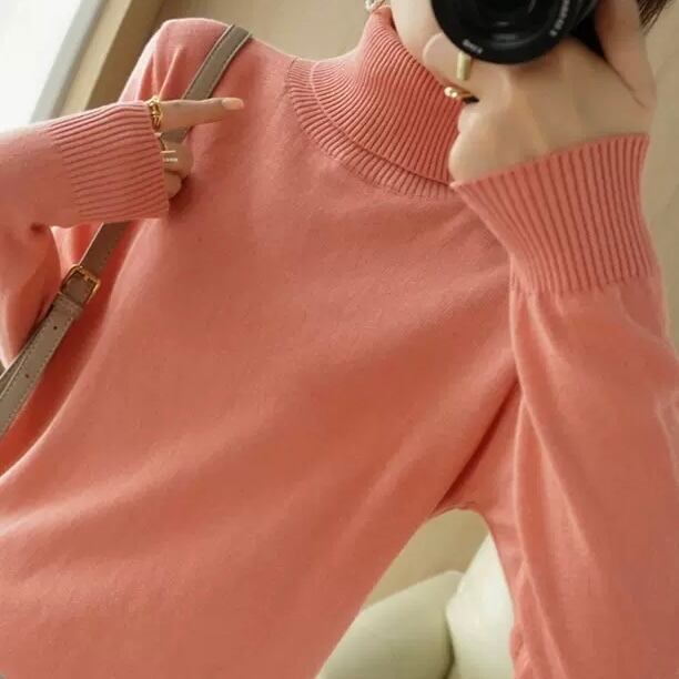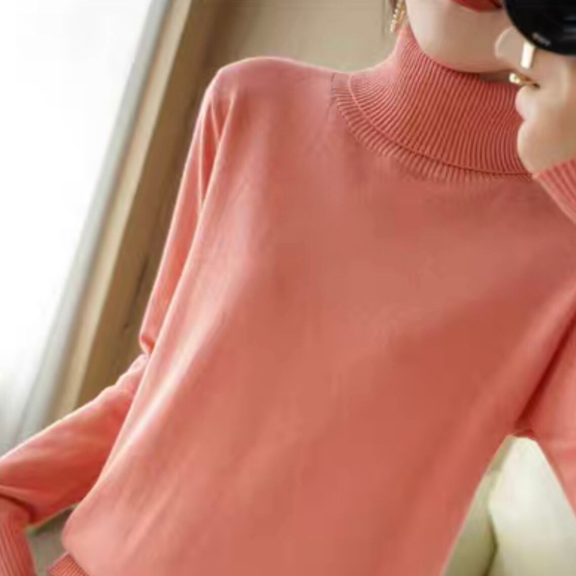 タートルネックが首元を暖かく包み、リブ袖が手首を華やかに彩ります。