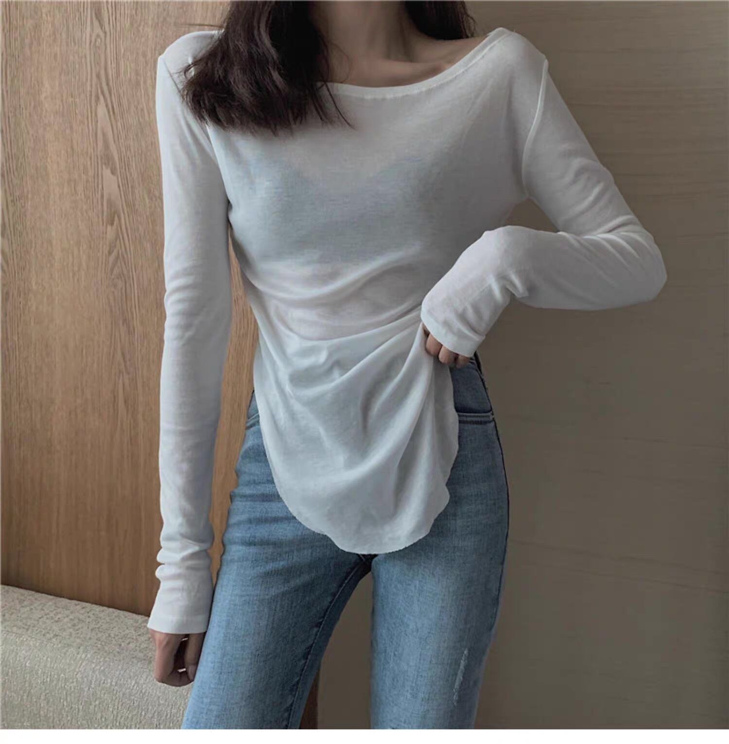 トップス ロンT カットソー レディース 長袖 ラウンドネック タイト スリム 細身 スマート フェミニン ストリート サイドスリット アメカジ 薄手 かわいい 大人可愛い きれいめ シンプル カジュアル おしゃれ かっこいい こなれ感 ラフ ガーリー ルーズ クール 抜け感 ラブリー キュート ベーシック アメリカン アクティブ ナチュラル 無地 春 秋 お出かけ 旅行 ジム 休日 カフェ 重ね着 普段使い 着回し レイヤード 定番 M L XL 白 ホワイト 黒 ブラック カーキ ブルー 緑 グリーン