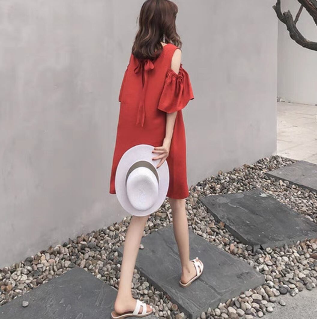 ワンピース レディース 膝丈 膝上 半袖 ドロップショルダー オープンショルダー オフショルダー フェミニン リボン バックリボン バックコンシャス かわいい 大人可愛い シンプル カジュアル おしゃれ ガーリー ルーズ 抜け感 ラブリー キュート ロマンティック 夏 デート お出かけ リゾート 旅行 海 ジム 休日 バカンス 高原 オルチャン コーデ 楽ちん 着回し モテ トレンド 流行 インスタ映え M L XL 2XL 3XL 4XL 小さいサイズ 大きいサイズ ゆったり ゆる 黒 ブラック レッド