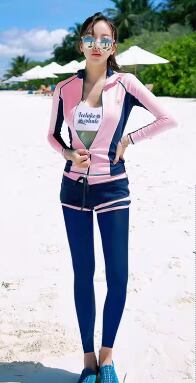 ショートパンツとレギンス、長袖の組み合わせは、日焼け防止にもなるので海やプール、ジムなどでの使用もおすすめ。