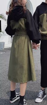 レディース スカート ワンピース プルオーバー スウェット 膝下 ミモレ 長袖 フード ストリート ベルト ウエストマーク ウエストリボン 切り替えデザイン バイカラー 中厚手 大人可愛い カジュアル おしゃれ ルーズ キュート アクティブ 無地 秋 冬 ロングシーズン ママ 通学 お出かけ アウトドア キャンプ イベント 旅行 公園 休日 お花見 楽ちん 暖かい 防寒 体型カバー 普段使い S M L XL 2XL 3XL 大きいサイズ ビッグ ゆったり 黒 ブラック カーキ 緑 モスグリーン