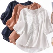 トップス 韓国風 オルチャン ブラウス レース 刺繍 シャツ Vネック デコルテ 透け感 シースルー シアー 袖あり 半袖 五分袖 Vネック デコルテ ストレート Iライン 大人可愛い きれいめ エレガント シンプル カジュアル 大人 上品 おしゃれ お洒落 かっこいい 大人女子 こなれ感 クール モード系 セクシー モダン スタイリッシュ シック 無地 春 夏 秋 仕事 オフィス フォーマル OL 韓国系 モテ 定番 M L XL サイズ展開 大きいサイズ 大きい くすみカラー 大人カラー カラバリ