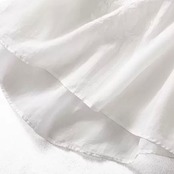 Vネックのデコルテが女性らしい印象を与え、程よく透け感のある素材で上品な印象を演出してくれます。