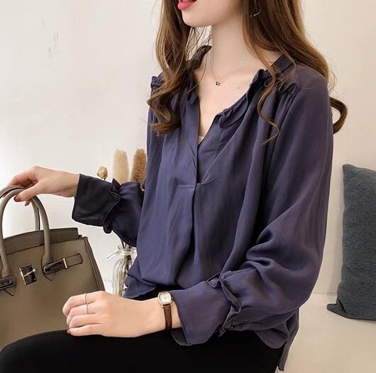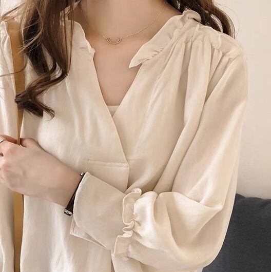 トップス シャツ ブラウス レディース 長袖 フリル袖 Vネック 襟付き 角襟 フリル かわいい 大人可愛い きれいめ シンプル 上品 おしゃれ レトロ ガーリー エレガント とろみ感 抜け感 ラブリー キュート ベーシック 無地 春 秋 通勤 お出かけ イベント 休日 重ね着 普段使い 着回し レイヤード トレンド 流行 インスタ映え 定番 M L XL 2XL 3XL 4XL 小さいサイズ 大きいサイズ ビッグ ゆったり ゆる クリーム 黄色 イエロー ネイビー ベーシックカラー 大人カラー 秋カラー
