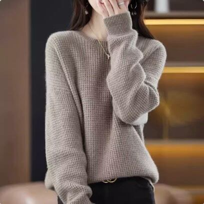 レディースのための女性らしいニットセーターが新登場!緩やかな編み込みが可愛らしさを引き立てる、ミディアム丈のデート用セーターです。袖ありでラウンドネック、襟なしのシンプルなデザインは、カジュアルからきれいめまで幅広いスタイリングに対応します。上品なかわいさが漂うレトロ風デザインは、大人女子にもオススメです。