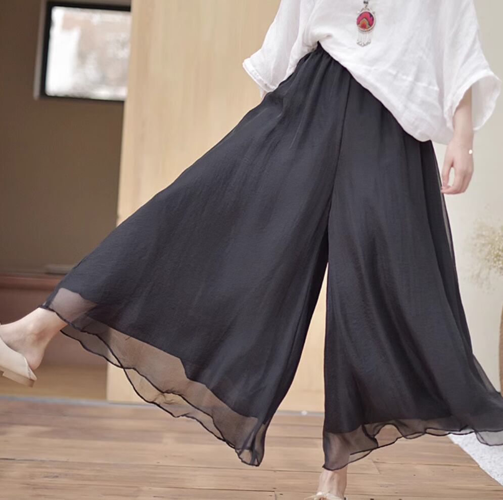 パンツ ボトムス ガウチョパンツ スカパン レディース ワイドパンツ ロング 8分丈 9分丈 アンクル丈 ワイド フレア Aライン シフォン 異国風 薄手 かわいい 大人可愛い シンプル 上品 おしゃれ レトロ アジアン エスニック エキゾチック こなれ感 ラフ 主役級 ベーシック カントリー ロマンティック ナチュラル 無地 夏 デート お出かけ 旅行 プール ビーチ 公園 双子 韓国 コーデ 楽ちん 体型カバー ゆったり ゆる