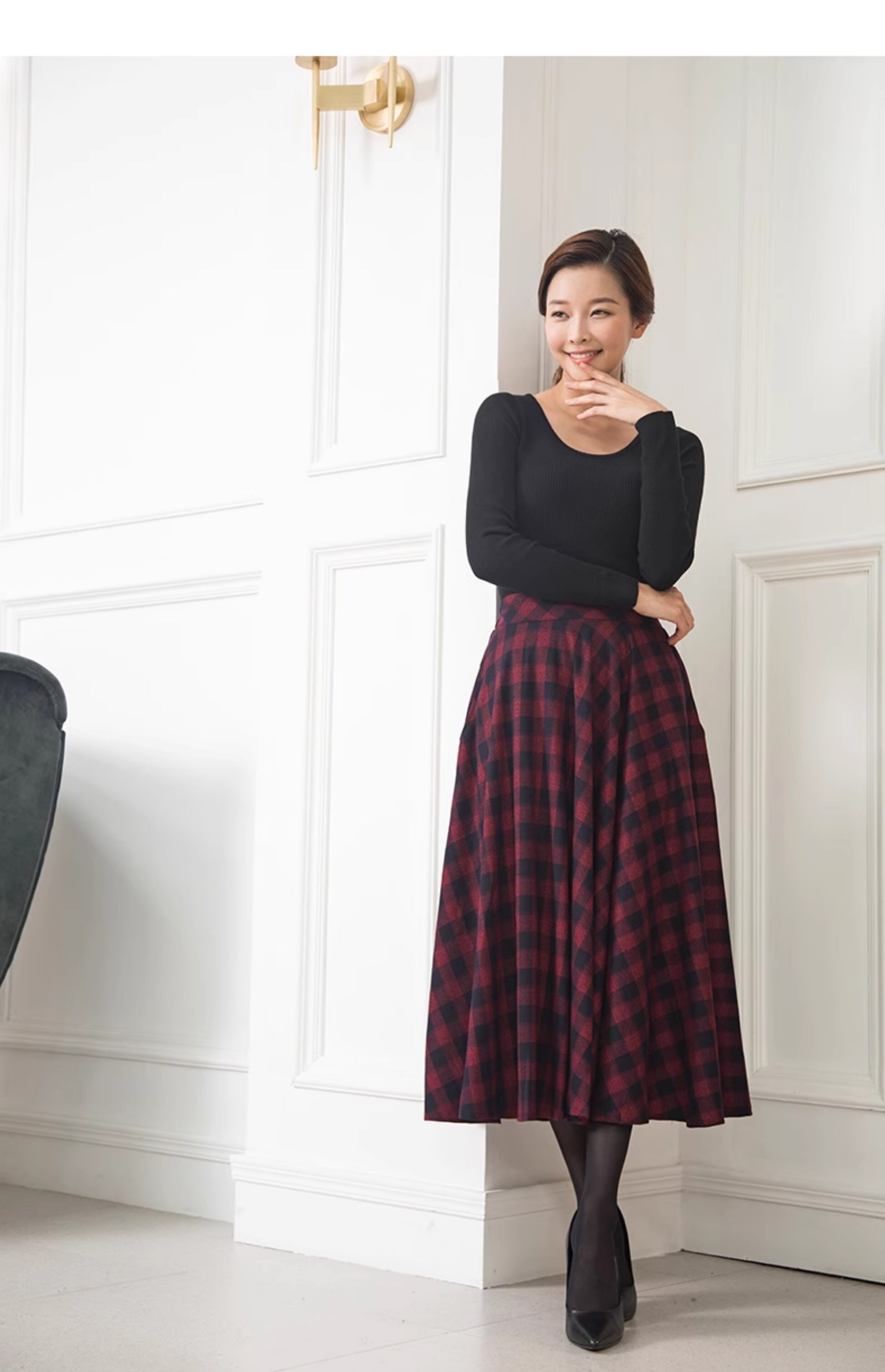 チェック柄がおしゃれなロングスカート。ワイドなフレアデザインが大人女子にぴったりの上品さを演出します。シンプルながらも個性的な切り替えデザインが、コーディネートに抜け感をプラス。デートや女子会、休日のお出かけにぴったりの一枚です。モダンでエレガントなスタイルを演出し、主役級の存在感を放つ一着。普段使いから特別な日まで、幅広いシーンで活躍する定番アイテムです。トレンド感満載のスタイリッシュなロングスカートで、周りと差をつけてみませんか?ファッションを楽しむ大人女子にぜひおすすめしたい一枚です。