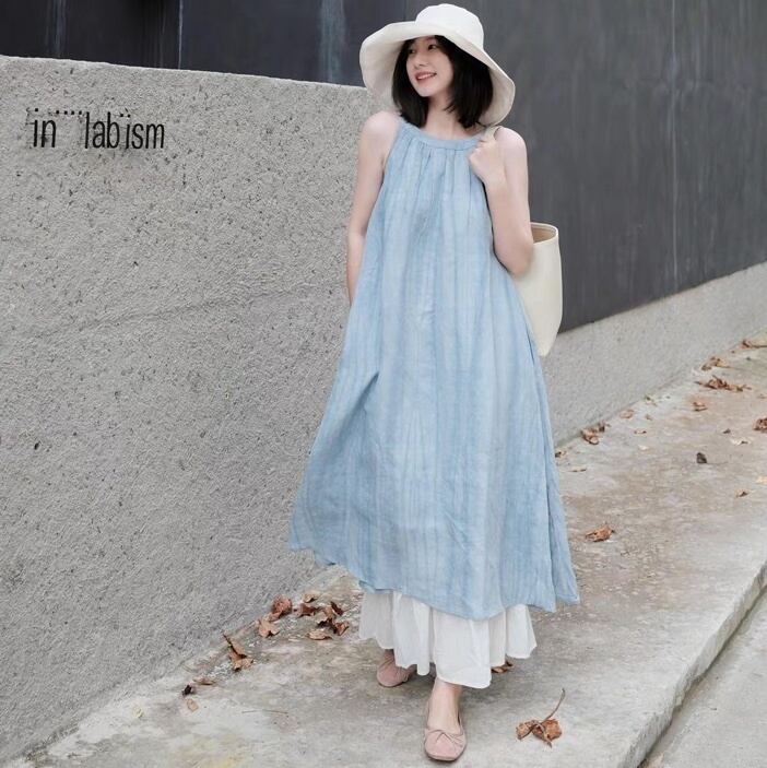 ワンピース レディース フレア ロング 袖なし ラウンドネック Aライン オーバーサイズ フェミニン かわいい 大人可愛い きれいめ シンプル カジュアル おしゃれ レトロ こなれ感 ラフ ラブリー キュート ベーシック ナチュラル 無地 夏 デート お出かけ イベント リゾート 旅行 レストラン ビーチ 休日 バカンス ガーデン フェス 重ね着 楽ちん 体型カバー 普段使い 着回し レイヤード トレンド 流行 インスタ映え 定番 S M L 小さいサイズ 大きいサイズ ゆったり ゆる 水色 ブルー