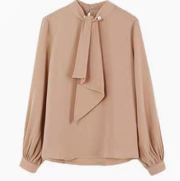 フェミニンなリボンタイが魅力の長袖シャツ。