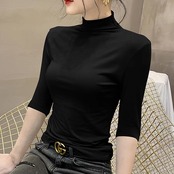 トップス カットソー プルオーバー インナー レディース 5分袖 モックネック タイト スリム 細身 スマート フェミニン 伸縮性 かわいい 大人可愛い きれいめ シンプル カジュアル 上品 おしゃれ こなれ感 ラフ ガーリー エレガント キュート ベーシック アクティブ ロマンティック ナチュラル 無地 春 夏 秋 お出かけ 旅行 女子会 休日 重ね着 普段使い 着回し レイヤード 流行 定番 S M L XL 2XL 黒 ブラック 茶色 ブラウン グレー ピンク くすみ ベーシックカラー 大人カラー