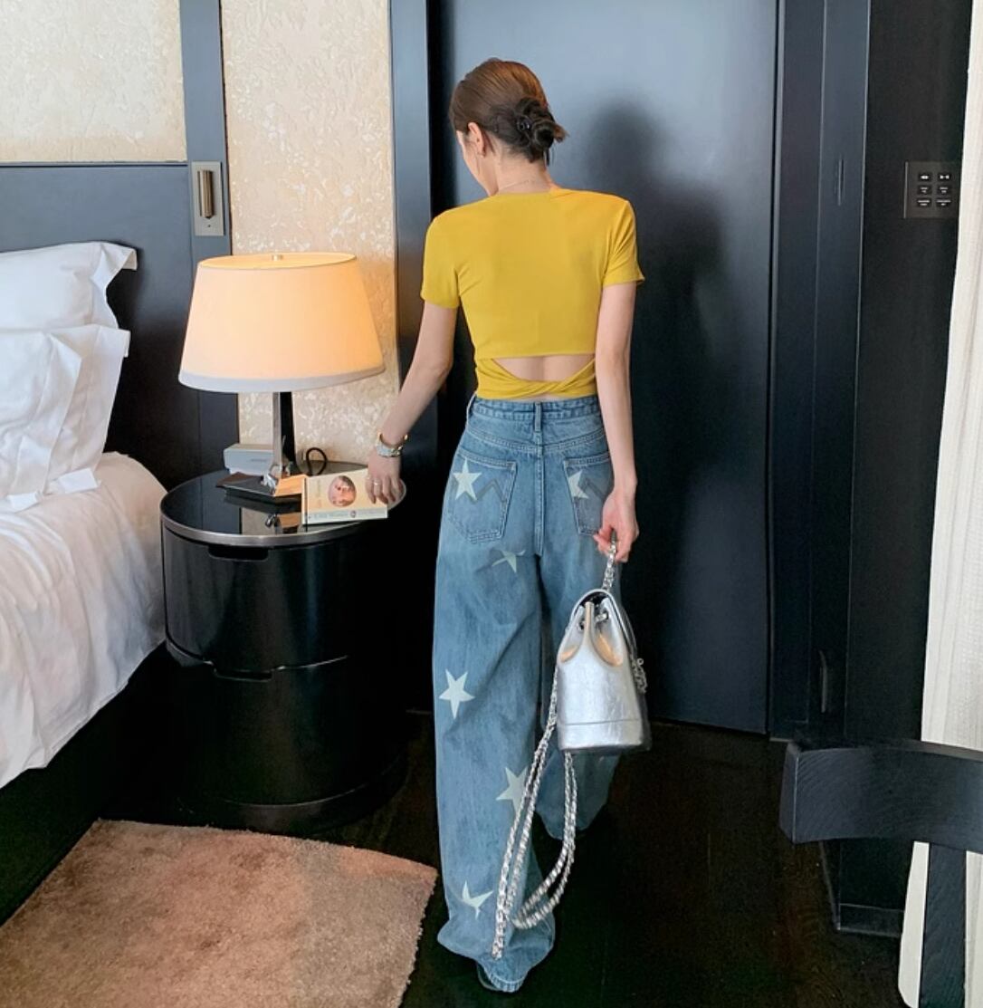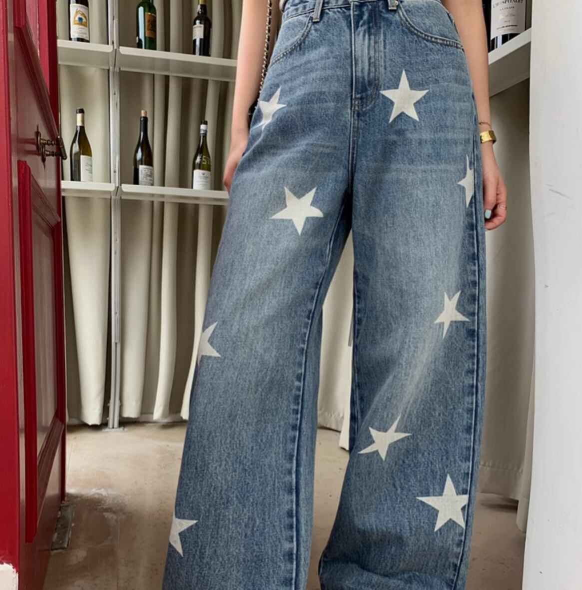 ユニークな星柄が目を引く、おしゃれなデニムパンツが登場しました!