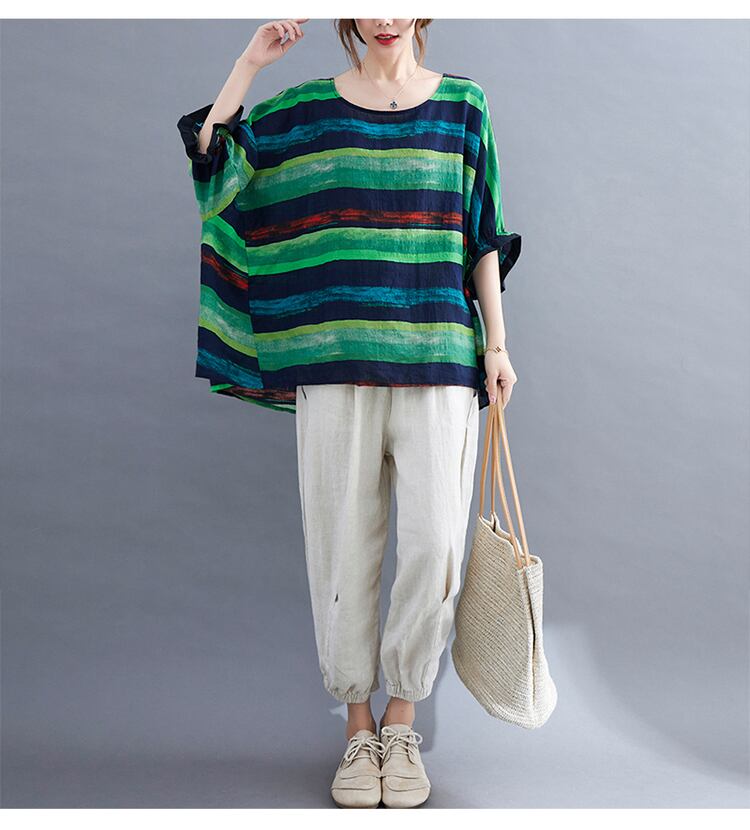 レディース トップス カットソー プルオーバー 丈長 7分袖 ラウンドネック 襟なし ワイド 薄手 リネン 麻 カジュアル レトロ アジアン エスニック エキゾチック こなれ感 ラフ ルーズ 個性的 クール 主役級 存在感 都会的 ナチュラル ボーダー 春 夏 デート お出かけ 公園 休日 ショッピング カフェ 重ね着 韓国 オルチャン コーデ 楽ちん 体型カバー 普段使い 着回し モテ 清楚 トレンド 流行 インスタ映え 定番 L XL ゆったり ゆる オレンジ グリーン 大人カラー マルチカラー
