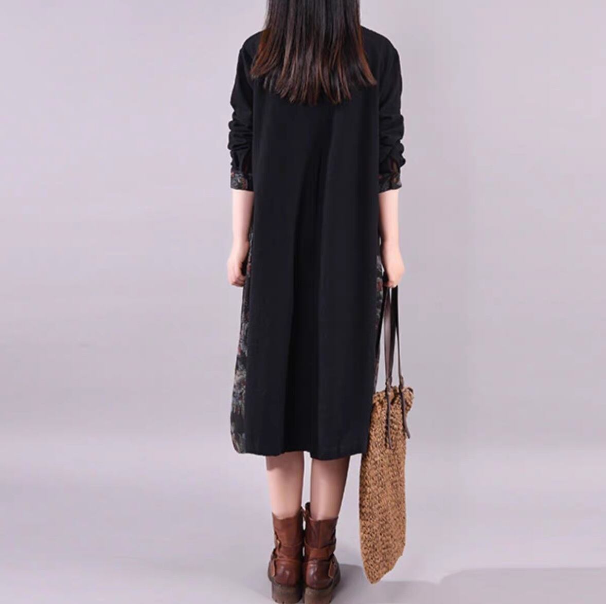 レディース ワンピース シャツワンピ フレア 膝丈 長袖 ラウンドネック 襟なし Aライン ウエストマーク ハイウエスト 切り替えデザイン ドッキング かわいい 大人可愛い 上品 レトロ こなれ感 ガーリー エレガント モダン 抜け感 ヴィンテージ ラブリー キュート カントリー アクティブ ロマンティック ナチュラル 花柄 フラワー 春 秋 デート お出かけ イベント 旅行 休日 楽ちん 体型カバー 普段使い 着回し トレンド 流行 インスタ映え M L XL 2XL ゆったり ゆる 黒 ブラック