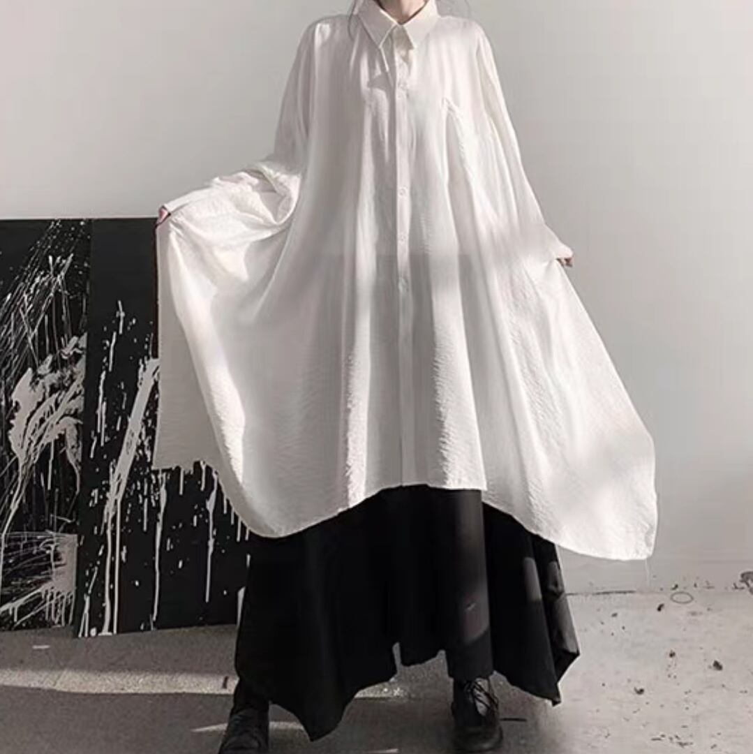 レディース トップス 羽織 前開き ロング アシンメトリー 長袖 フレア Aライン オーバーサイズ かわいい 大人可愛い シンプル おしゃれ こなれ感 個性的 クール モード系 存在感 ヴィンテージ キュート ベーシック 無地 春 秋 お出かけ イベント 女子会 休日 コンサート ライブ カフェ フェス モノトーン 重ね着 韓国 オルチャン コーデ 楽ちん 体型カバー 着回し レイヤード トレンド 流行 インスタ映え 定番 大きいサイズ ビッグ ゆったり ゆる フリーサイズ 白 ホワイト 黒 ブラック